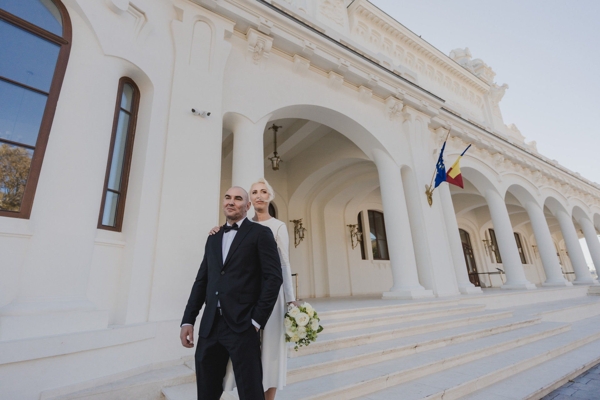 Clădirea, simbol Cazinoul din Constanta i-a gazduit pe Georgiana și Alexandru care au fost foarte emoționați și fericiți pe tot parcursul ceremoniei, după am profitat de eleganța sălilor renovate și de priveliștea superbă către mare pentru o scurtă ședință foto, fiecare colț al clădirii a oferit un fundal aparte, de la scările până la arcadele cu vedere spre faleză.